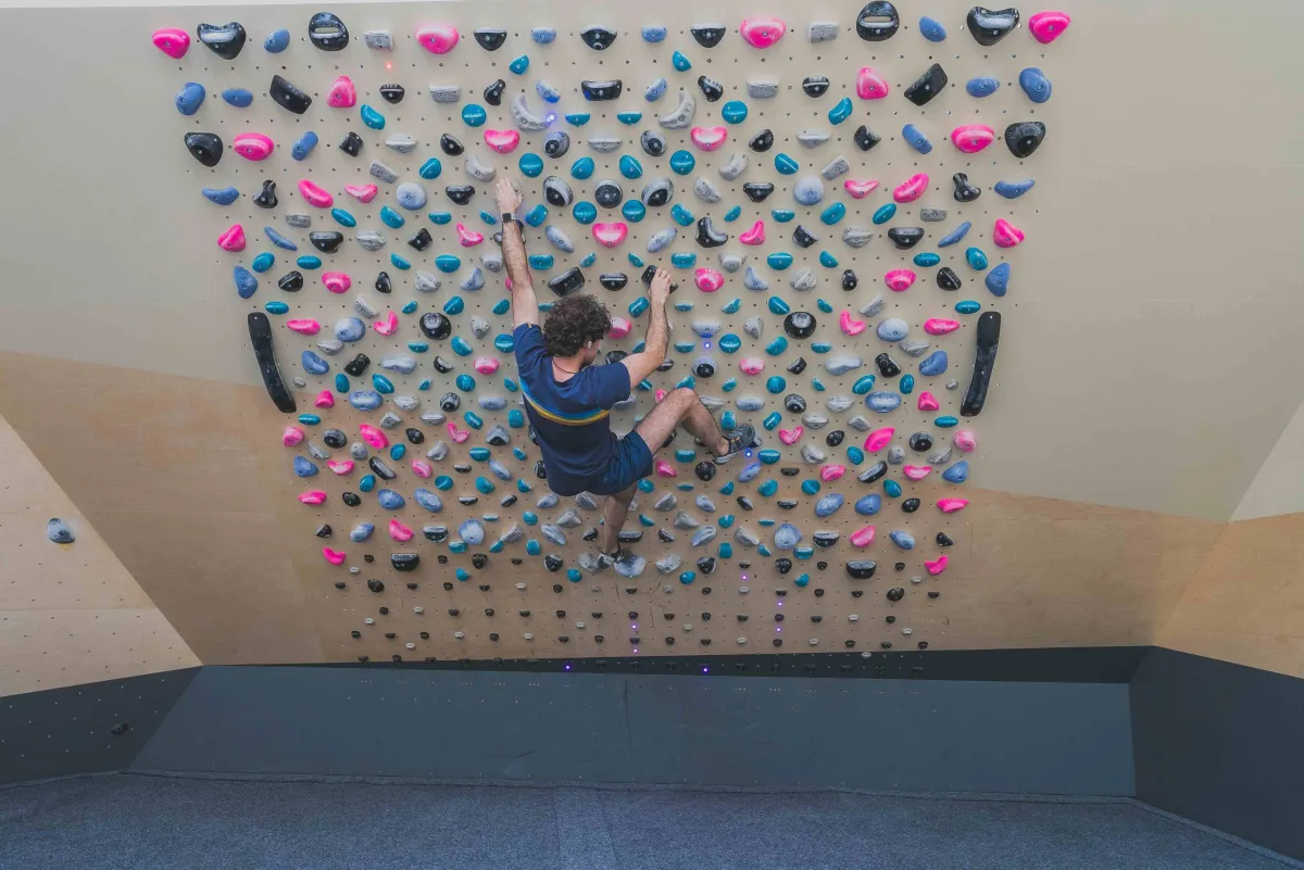 Peak times are after work and weekends, but climbing is self-paced — you can always find climbs to jump on. Off-peak times are quieter if you prefer low crowds.